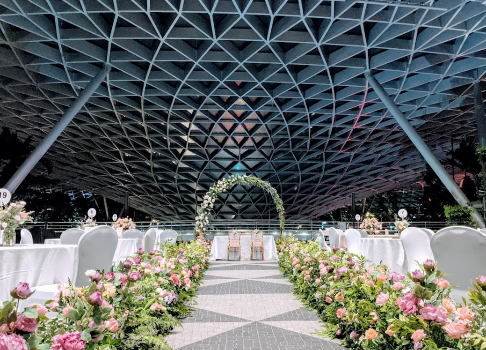 If you have always dreamed of having your wedding reception in an air-conditioned garden environment, we have the perfect location for you! Jewel's Canopy Park is now available for wedding engagement bookings, and it even comes with a floral arch for that picture perfect "I Do" moment!